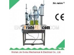 This spray filling machine hashigh efficiency, high precision and high automation features. It issuitable for filling and sealing kinds of spray product andpropellant (LPG, F12, DME, CO2, N2, etc.). It is composed of canunscrambler, liquid filling machine, valve inserting machine,vacuumizing, sealing and gas filling machine, weighing machine,water-bash leakage testing machine, actuators feeding and pressingmachine, cap feeding and pressing machine, jet-ink printer andpackaging table.